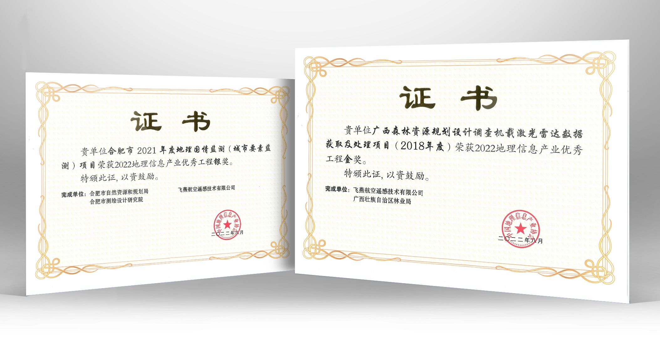 飛燕遙感2022地理信息產(chǎn)業(yè)優(yōu)秀工程獎(jiǎng)證書