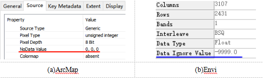 圖 3 常見GIS遙感軟件對無數據值的支持
