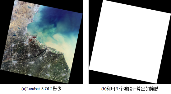 基于各個波段的掩膜,可以計算出整個數據集的掩膜。對于3波段真彩色影像,計算方法為: