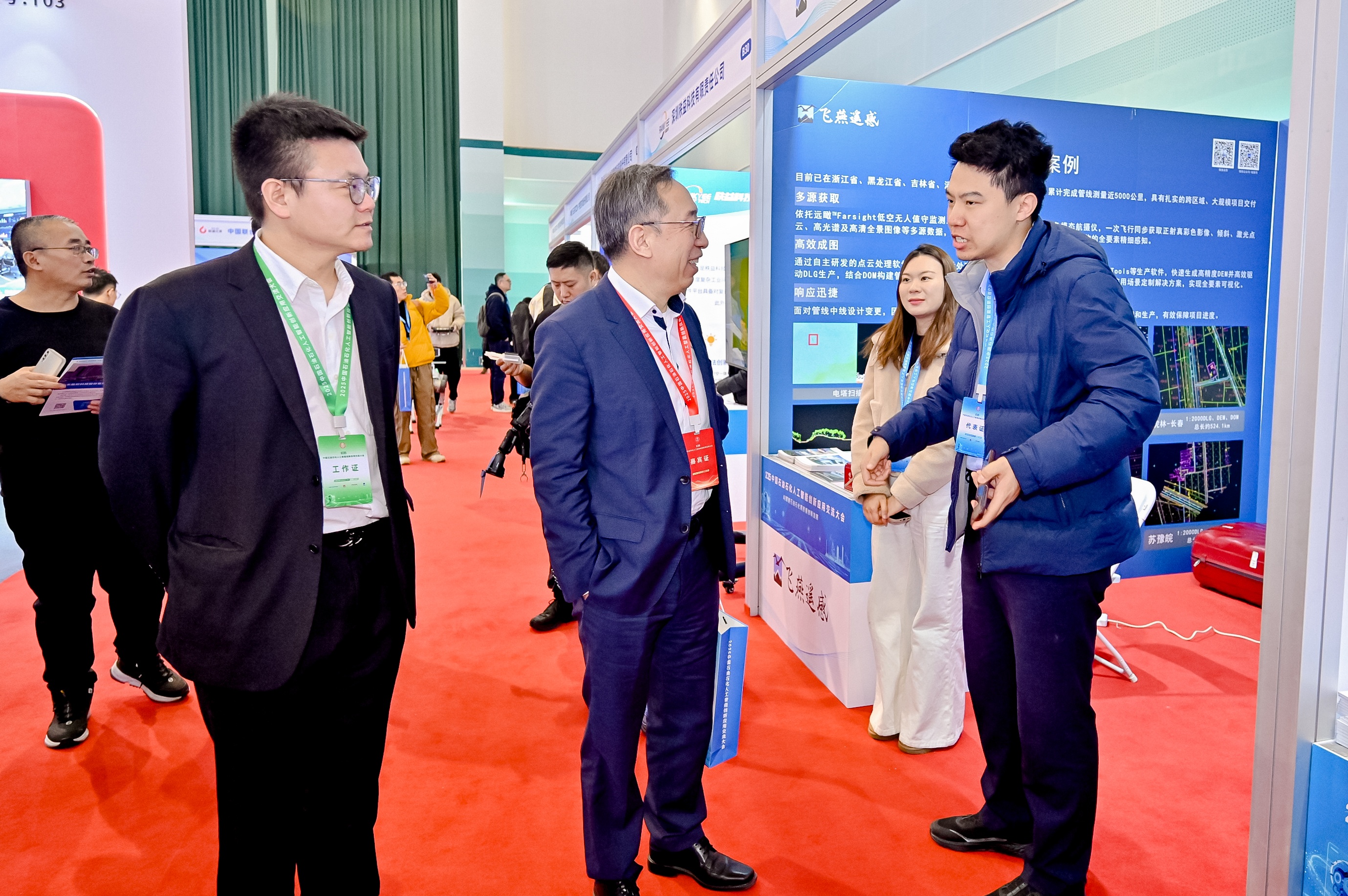 在展臺與報告廳內,飛燕遙感與多位行業專家及企業代表就“智慧轉型呼喚端到端解決方案”的技術路徑展開深度探討,共同交流分享石油石化企業數智化經驗,探索行業數智化新路徑。截至目前,公司近年來的數據覆蓋面積已超過160萬平方公里,累計形成的時空數據資產更達300萬平方公里。從長春 - 石家莊天然氣管道工程的大范圍高效勘察,到泰順支線天然氣管道工程的復雜山區精準測繪,再到蘇豫皖干線項目的 “有人機 + 無人機” 協同作業,飛燕遙感已成功交付累計約 5000 公里長輸管線航攝與探測項目,以“快速響應、攻堅克難、精益求精”的服務理念贏得客戶高度評價。