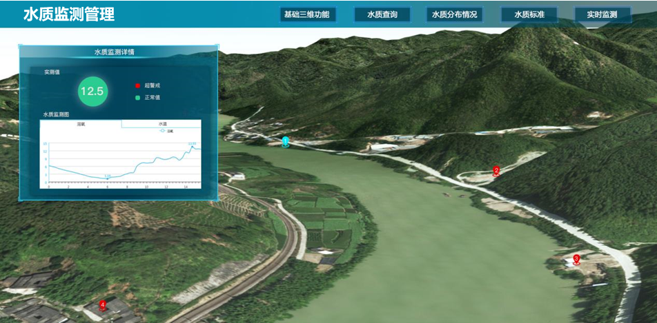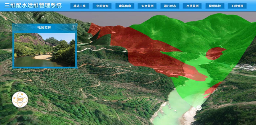 在系統中引入BIM模型,通過三維引擎仿真渲染后,實時直觀地以三維場景展示配水運維工程,并將實時獲取的各類運行信息在三維場景中結合局部三維模型直觀展示,具有配水運維工程空間查詢、建筑信息查詢、安全監測、運行狀態監測、水質監測、視頻監控和工程管理等功能。